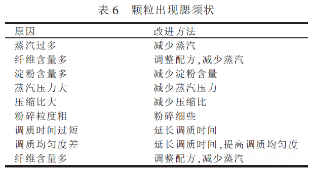 根據(jù)美國大豆協(xié)會(huì)的研究表明,在顆粒質(zhì)量的影響因素中配方占40%,粉碎粒度占20%,調(diào)質(zhì)效果占20%,制粒過程控制占15%,冷卻條件占5%。